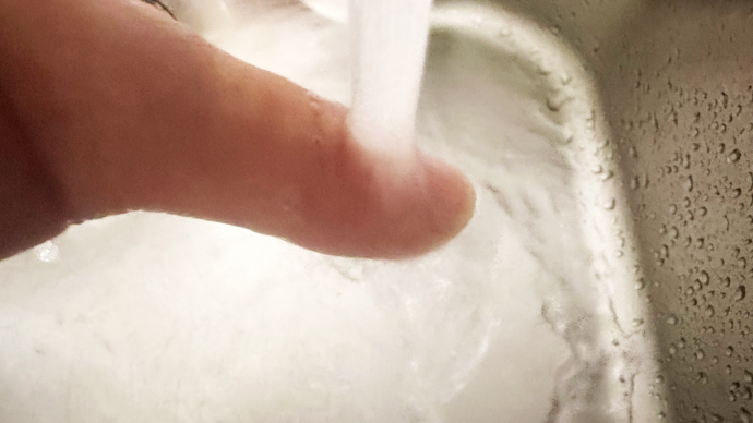 っということで、水道水で冷やす。