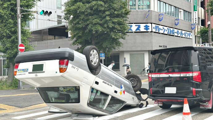 交差点で派手に自転車がコケた